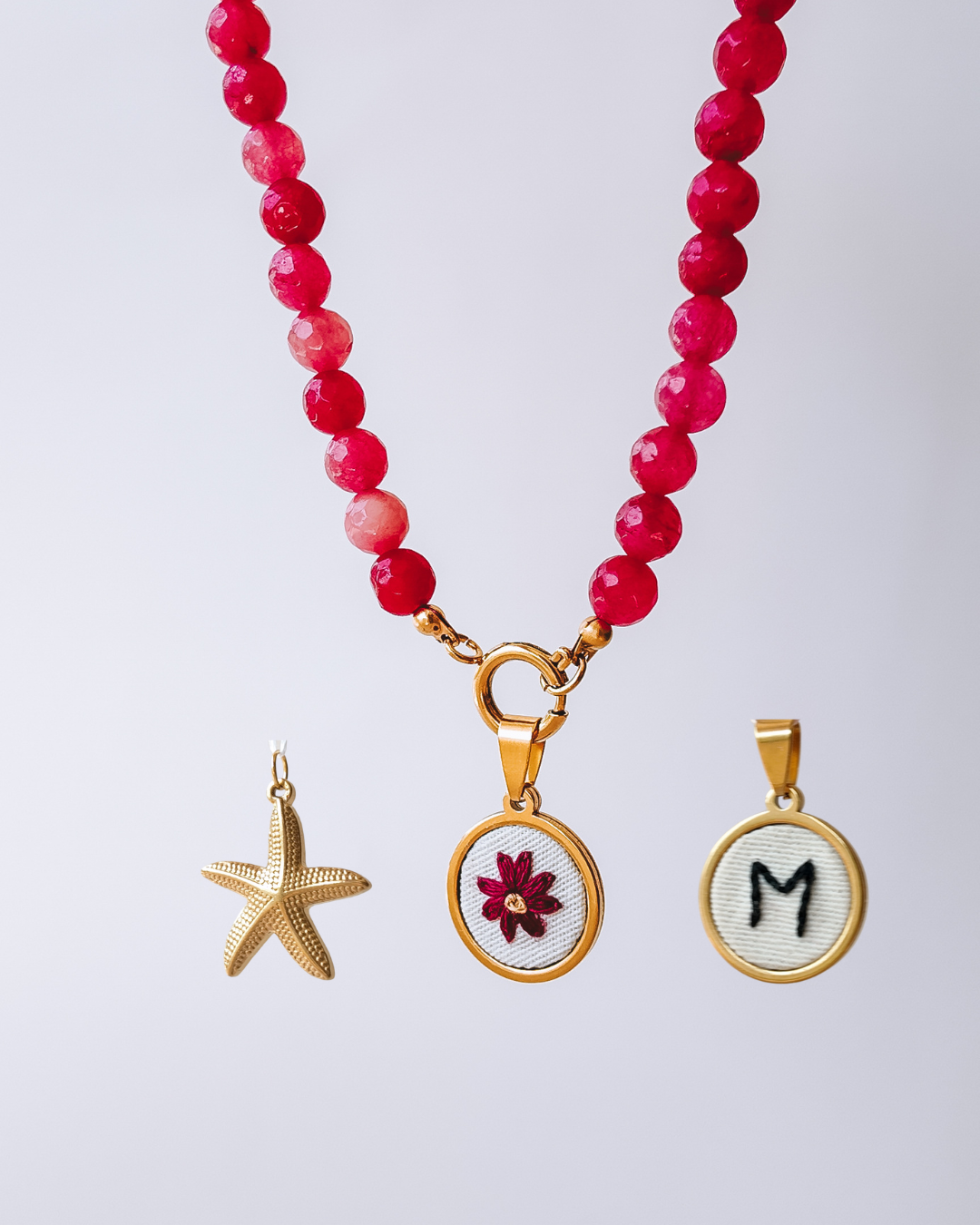 Por serem feitos à mão, os bordados dos pendentes podem variar um pouco a sua forma, pois cada bordado é único